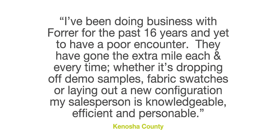 Forrer represents over 400 furniture manufacturers giving you the best variety of workplace furnishings from ergonomic seating and height-adjustable desks to collaborative lounge furniture and work-tool accessories. We will work with you to design and implement a highly effective space that meets your aesthetic vision, budget and schedule. For over 70 years we have built trusting relationships with these manufacturers to give our clients the best products at the best prices.